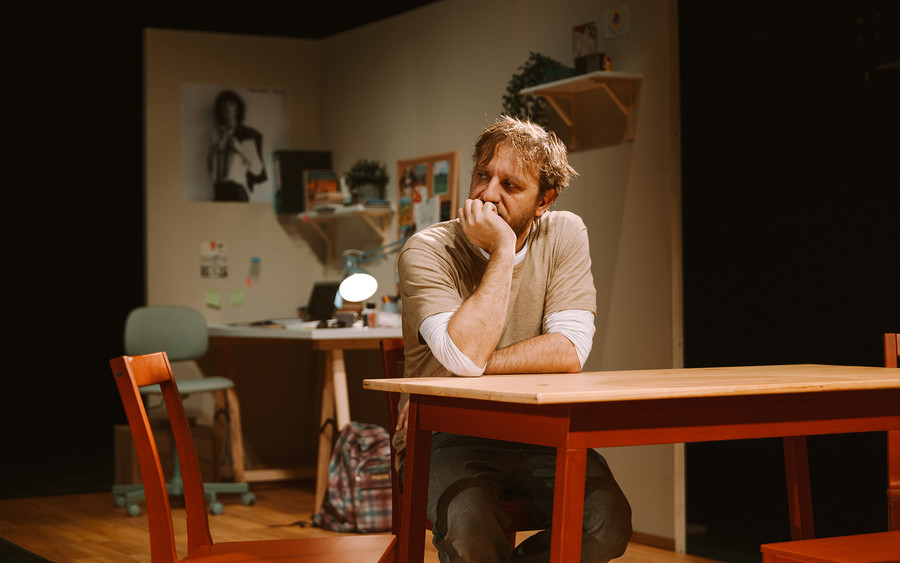 Matej Puc v vlogi Tineta, soproga, očeta in precej tipičnega predstavnika urbane populacije srednjih let, ostaja v domeni otipljivega. Ne pestijo ga univerzalni problemi, bolj ga duši občutek oddaljevanja od družine in odtujenosti od lastnega življenja kot posledica banalnosti vsakdana. Matej Puc z virtuoznim ritmičnim preigravanjem različnih psiholoških registrov – od ljubečih poskusov, kako spet navezati pristen stik z ženo, do pikrih očitkov in ironičnih komentarjev – gradi lik sodobnega moža in očeta tako prepričljivo, da se gledalec nemalokrat zaloti pred dilemo, ali dejanje poteka spontano pred njegovimi očmi ali pa je dejansko rezultat bravurozne igre.