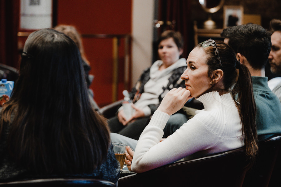 Pogovor o večji dostopnosti gledališča za tujejezične (potencialne) gledalke in gledalce je razgrnil kompleksno (lokalno) problematiko integracije, mapiral primere dobrih (umetniških) praks ter osvetlil vlogo gledališča pri učenju jezika in lažjem vključevanju v slovenski družbeni in kulturni prostor. Predstavili smo dva projekta: gledališke delavnice za osebe z izkušnjo priseljenstva in naklonjenostjo do gledališča, ki v sklopu nastajajoče uprizoritve Kako se naučiti dvojine potekajo v Prešernovem gledališču Kranj, in Pot v Dramo SNG Drama Ljubljana.