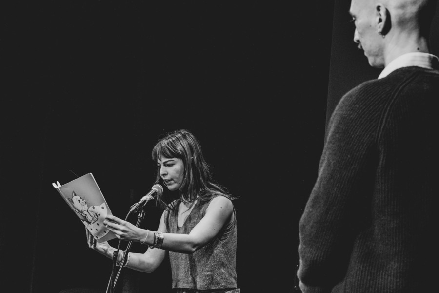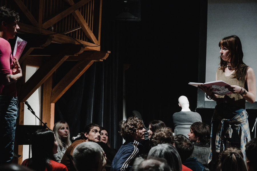 Utrinki z bralnih uprizoritev 10-minutnih besedil študentov AGRFT