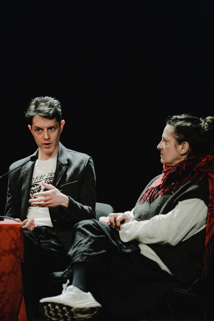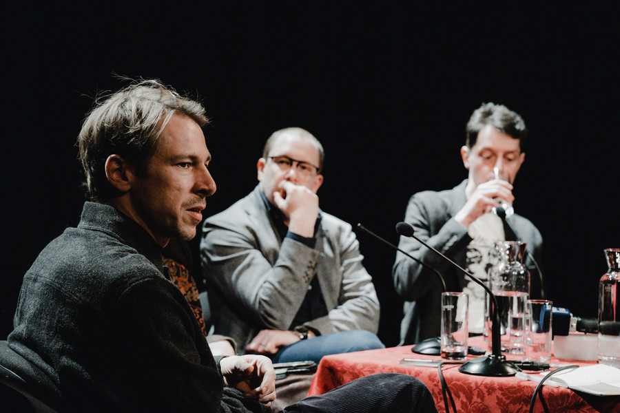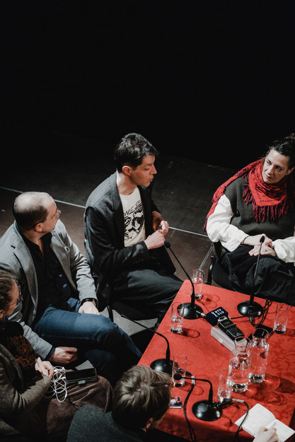 Utrinki z Okrogle mize Hiša za goste: Umetniška svoboda na kocki - gledališče v politično zaznamovanih kontekstih