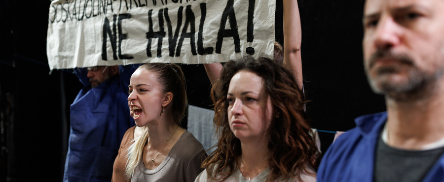 /…/ kolektiv uprizoritve Anhovo si ne zatiska oči, ne odvrača pogleda. Svoj glas daje dejstvom, ki jih preglašujejo apetiti po dobičku.